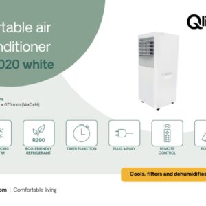 Prenosna klimatska naprava Qlima P 3020 s hladilno močjo 2.000 W je idealna za hlajenje manjših prostorov, kot so spalnice, domače pisarne ali študentske sobe. Prostor se v kratkem času ohladi na želeno temperaturo tako, da lahko udobno spite ali delate. Zahvaljujoč funkciji razvlaževanja se iz zraka odstrani odvečna vlaga, kar zagotavlja dodatno udobje in bolj zdravo bivalno okolje.